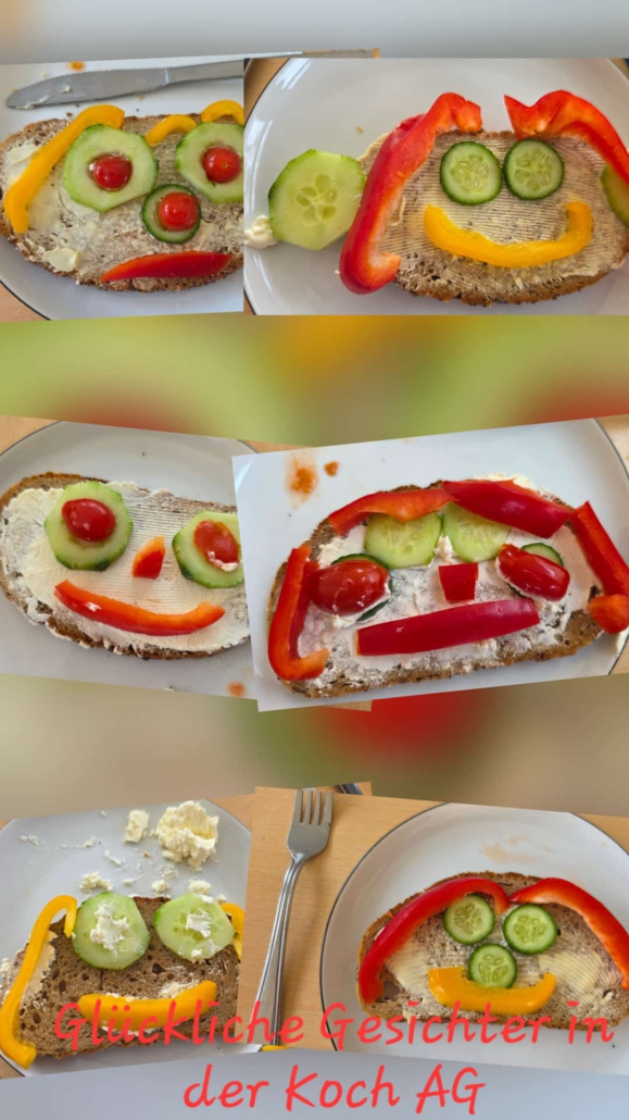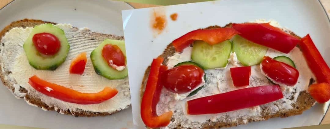 Zuletzt wurde es besonders kreativ: Die Kinder haben frisches Gemüse geschnitten und daraus lustige Smileys auf Broten gestaltet. Mit viel Fantasie entstanden bunte Gesichter, die nicht nur toll aussahen, sondern auch richtig gut schmeckten.